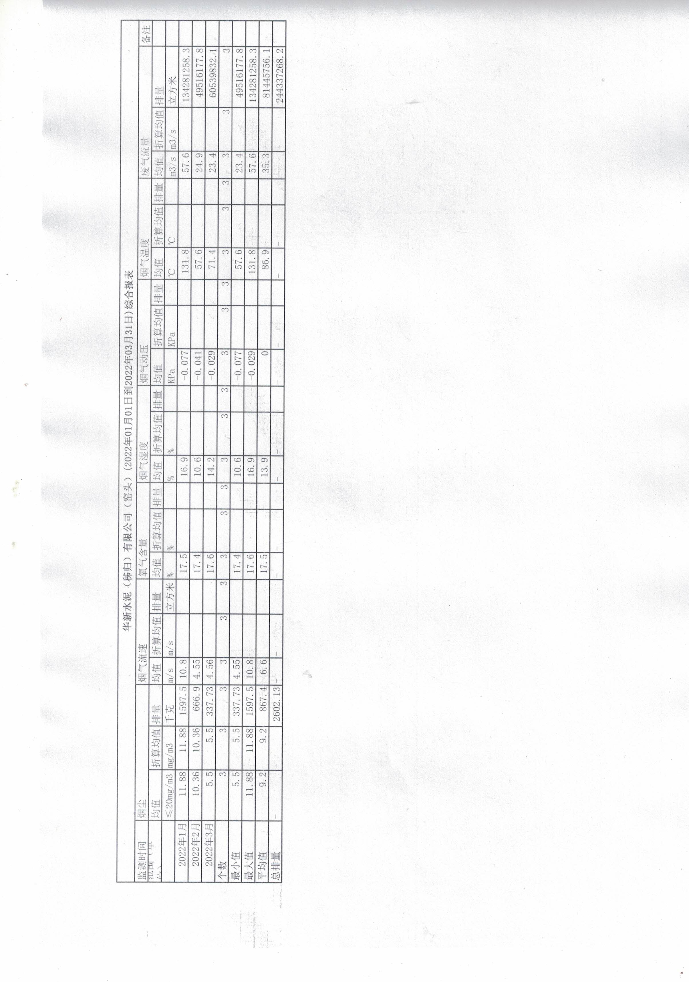 9.華新水泥(秭歸)有限公司-窯尾(2022年01月01日到2022年03月31日)綜合報(bào)表